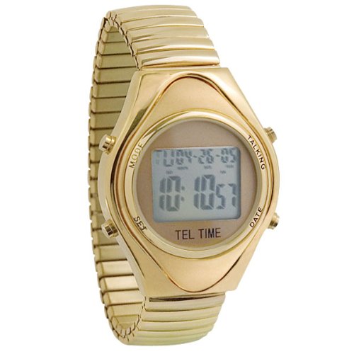 The only men's Gold Quartz Talking Watch that has time, alarm, calendar, timer annoucement with clear male voice. The watch has LCD time and calendar display. Gold case with a gold expansion band. Easy to set, easy to maintain. 12/24 hour format. 1 lithium battery (included). Face size: 1 3/8 diameter.Customer Reviews